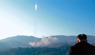<사진> 2월 7일 광명성 발사를 지켜보는 김정은. 4차 핵실험에 이은 미사일 도발은 유엔 안보리로 하여금 더욱 강한 대북 제재안을 만들게 했다.