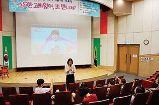 이날 마지막 강좌는 ‘함께하는 한류 음악’이라는 주제로 진행됐다. 강의에 나선 뮤지컬 배우 유정은 씨는 세계로 뻗어가는 한류를 소개하고 참여한 학생들과 노래를 함께 부르는 기회를 가졌다.