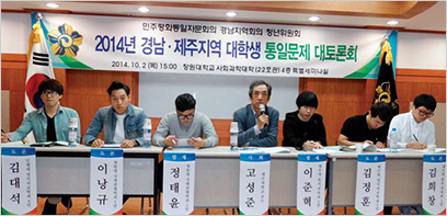 경남지역회의(부의장 성제경)는 10월 2일 오후 3시 창원대 사회과학대 세미나실에서 청년위원회(위원장 황용호) 주관으로 경남·제주 대학생 통일 문제 대토론회를 개최했다.