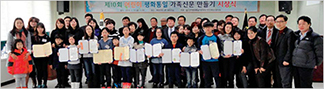 인천 계양구협의회(회장 최재현)는 1월 16일 계양구청 회의실에서 박형우 계양구청장을 비롯해 자문위원과 학부모 등 100여 명이 참석한 가운데 제10회 어린이 평화통일 가족신문 만들기 공모전 시상식을 개최했다. 공모전은 어린이들이 통일 문제에 관심을 갖고 통일 꿈나무로 성장할 수 있는 계기를 마련하기 위해 관내 초등학교 어린이들을 대상으로 개최됐다.